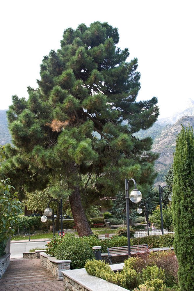 A Donnas si gode di un microclima particolare e lo testimonia la presenza storica di piante non tipiche delle nostre zone. Una di queste, a dimora da ben 120 anni, è Il Pinus pinaster Aiton o pino marittimo, specie molto diffusa nell’area mediterranea sud-occidentale temperata che non dimostra una grande resistenza al freddo. Lo si può trovare a dimora presso la chiesa parrocchiale di San Pietro in Vincoli. La motivazione storica è legata alla scelta atavica di riconoscere potenzialità e significati spirituali negli alberi resinosi , e questi ne contraddistinguevano i luoghi di culto. La recente sistemazione dell’accesso al sagrato della chiesa, ha valorizzato la presenza e la possibilità di vedere da vicino l’albero. Questo esemplare, alto 16 metri con circonferenza 274 cm e diametro 87 cm, è il più grande conosciuto nella nostra Regione, anche se esemplari di questo specie possono raggiungere anche i trenta metri. Comunque i più attenti potranno notare che la chioma conica è sostenuta da un fusto dall’andamento arcuato dove sono visibili i segni del taglio di grossi rami che, probabilmente, intralciavano il traffico dei veicoli lungo la strada.
