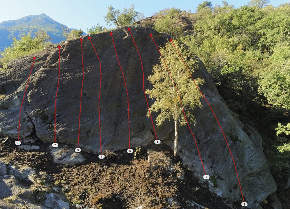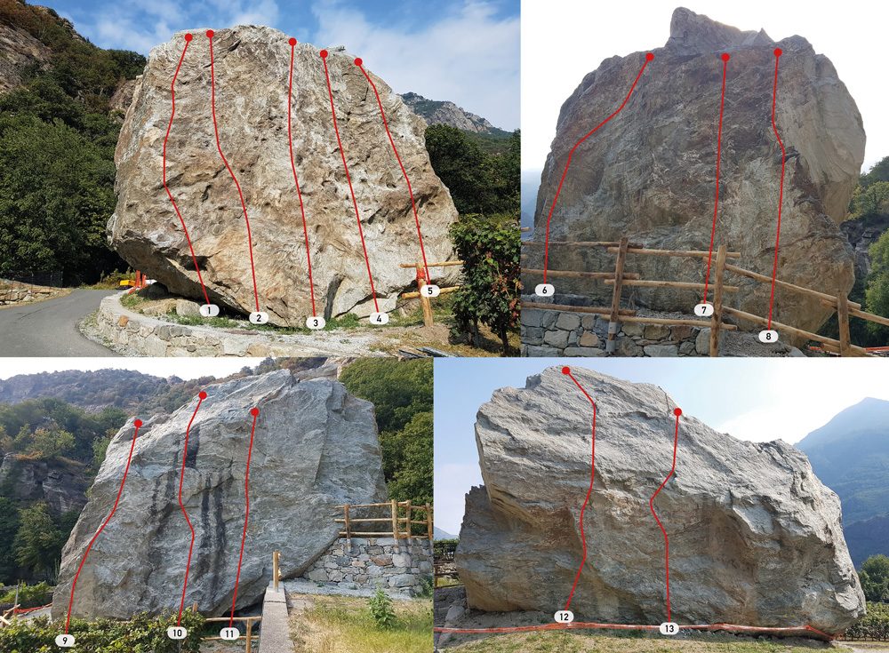 Donnas è fin dai primi anni 90 conosciuto dai climbers per le sue falesie. Negli anni 2000 l’area è stata ri-scoperta dagli appassionati del boulder hanno pulito e liberato decine di passaggi sui blocchi sparsi nei castagneti.