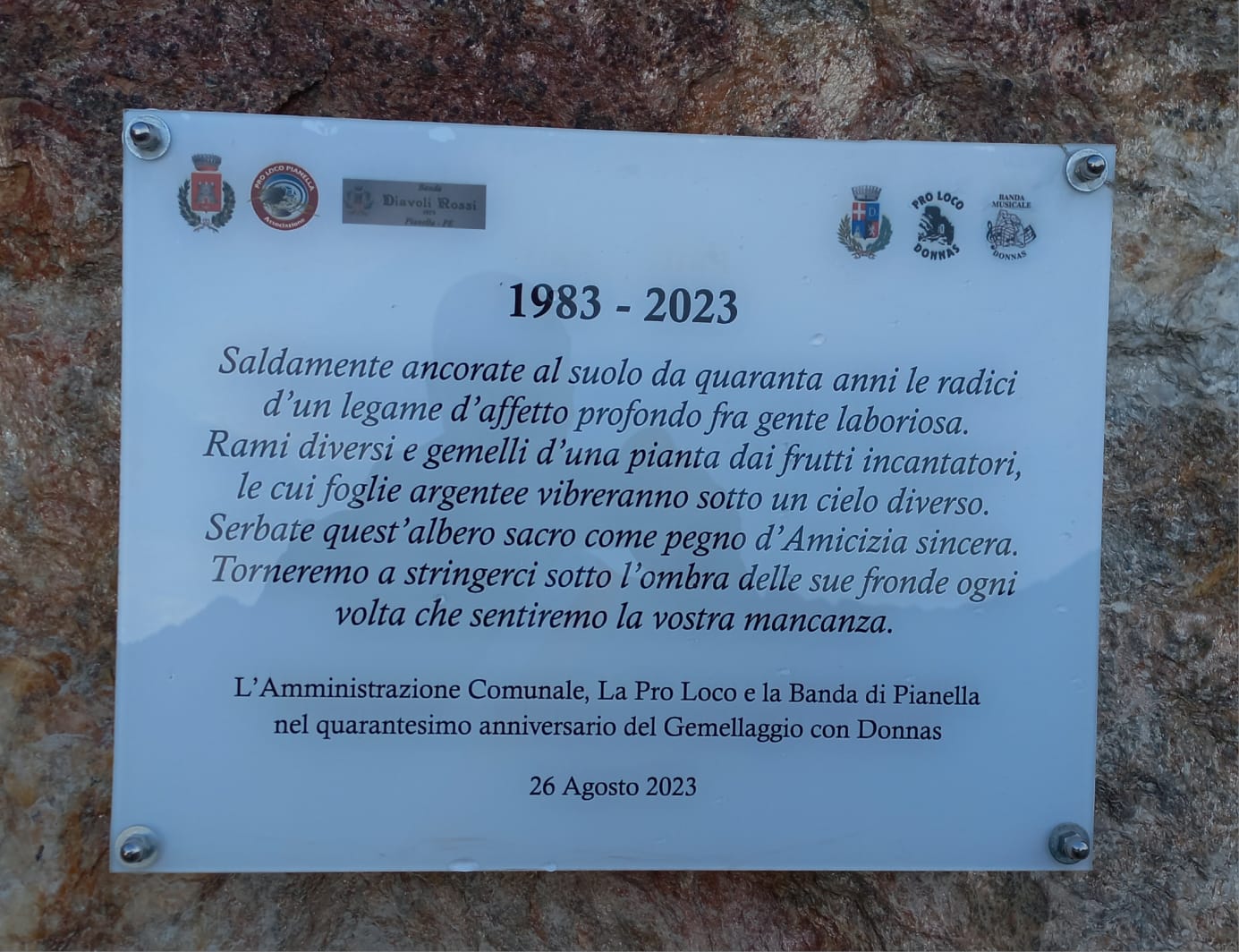 Il Comune, la Pro Loco e la Banda di Donnas, nel corso di una giornata ricca di ricordi ed emozioni, hanno rinnovato l’Antico legame con gli Amici di Pianella.